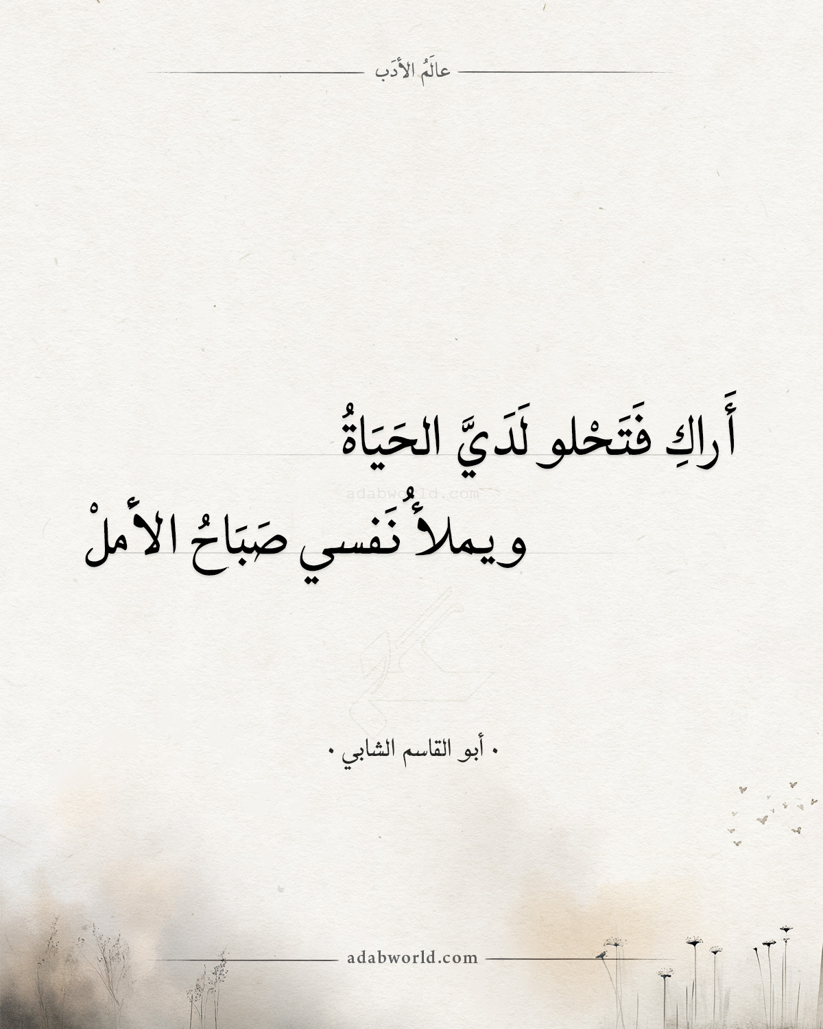These verses by Abu al-Qasim al-Shabi express how love transforms life into a realm of beauty, hope, and passion.